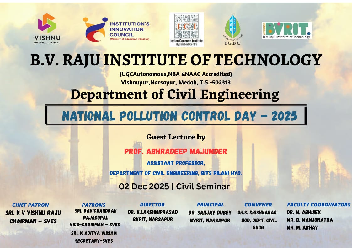 Greetings from the Department of Civil Engineering at B. V. Raju Institute of Technology, located in Narsapur, Telangana. Our journey began in 2012, and throughout the past decade, we have flourished in both expertise and competency within the fundamental disciplines of civil engineering and research.