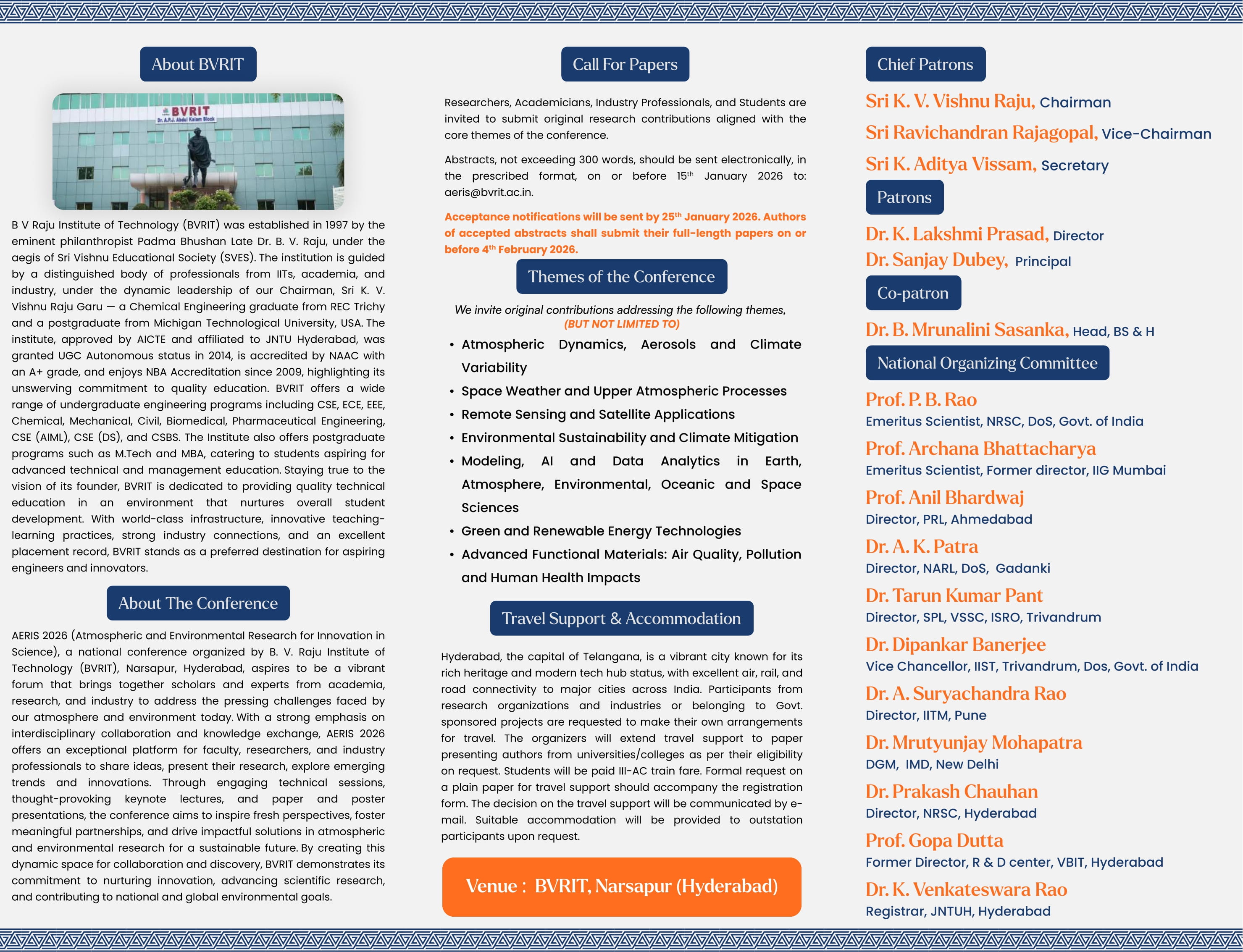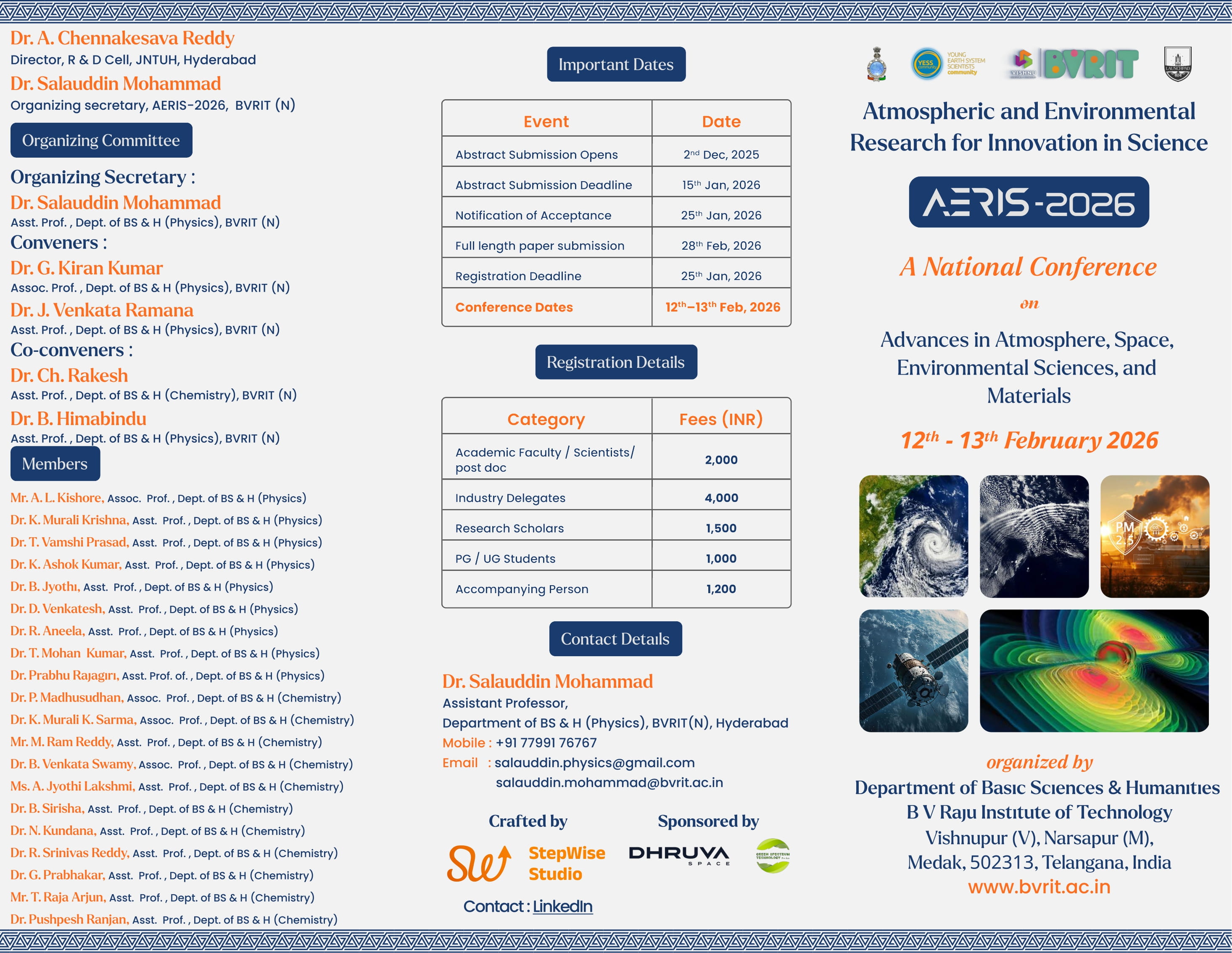 AERIS 2026 – National Conference on Advances in Atmosphere, Space, Environmental Sciences, and Materials” is on 12th & 13th February 2026.