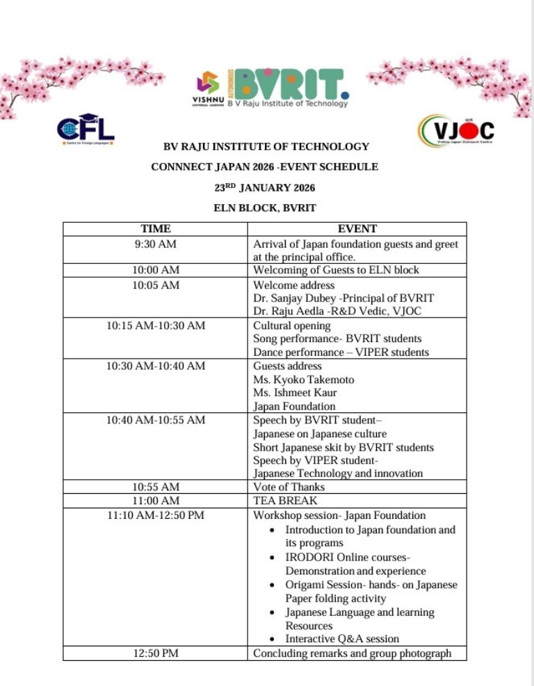 BVRIT: Connect JAPAN 2026 (Language, Culture, Opportunities) on 23-01-2026.