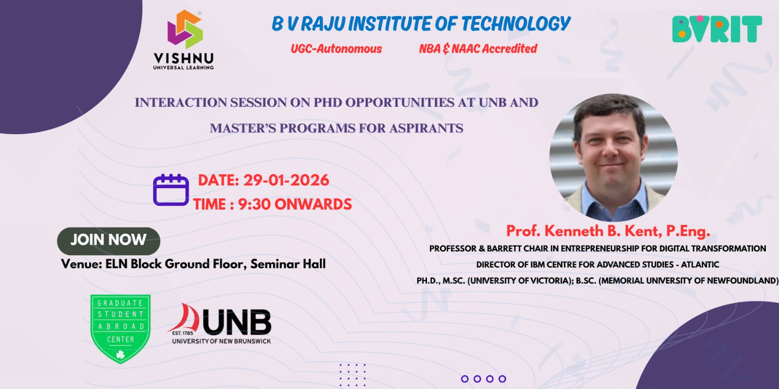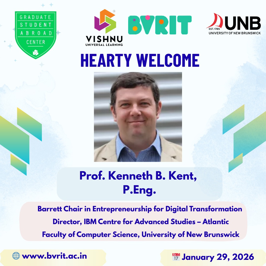 BVRIT GSAC: Dr. Kenneth B. Kent, Faculty of Computer Science, University of New Brunswick (UNB), Canada, visit to BVRIT Narsapur on 29-01-2026.