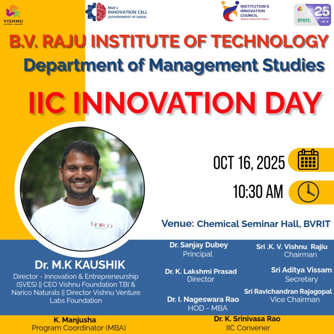 Dept. of Management Studies: IIC Innovation Day on 16-10-2025.