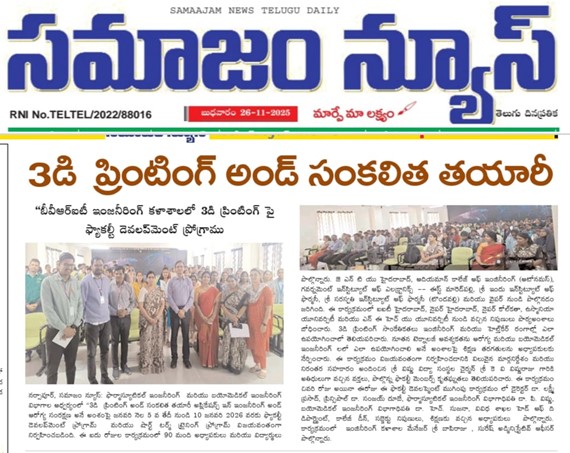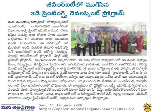 The Departments of Pharmaceutical Engineering and Biomedical Engineering successfully organized a Faculty Development Program (FDP) and Short-Term Training Program (STTP) titled “3D Printing and Additive Manufacturing: Applications in Engineering and Healthcare” during the Academic Year 2025–26, from 05 to 10 January 2026. The 1-week program was conducted in hybrid mode, combining both online and offline sessions.