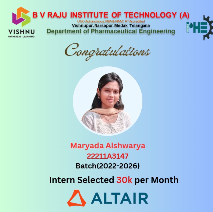 19 | 20211A3137 | S. BHARGAVI REDDY | FLEMING LABORATORIES LIMITED | 2.4 |